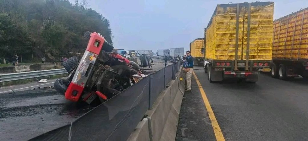 La mañana de este martes se reportó un accidente en la autopista Xalapa-Perote a la altura de la localidad del fresno.De acuerdo a los primeros reportes un tráiler que transportaba tubos perdió el control al quedarse sin frenos, por lo que terminó volcado.