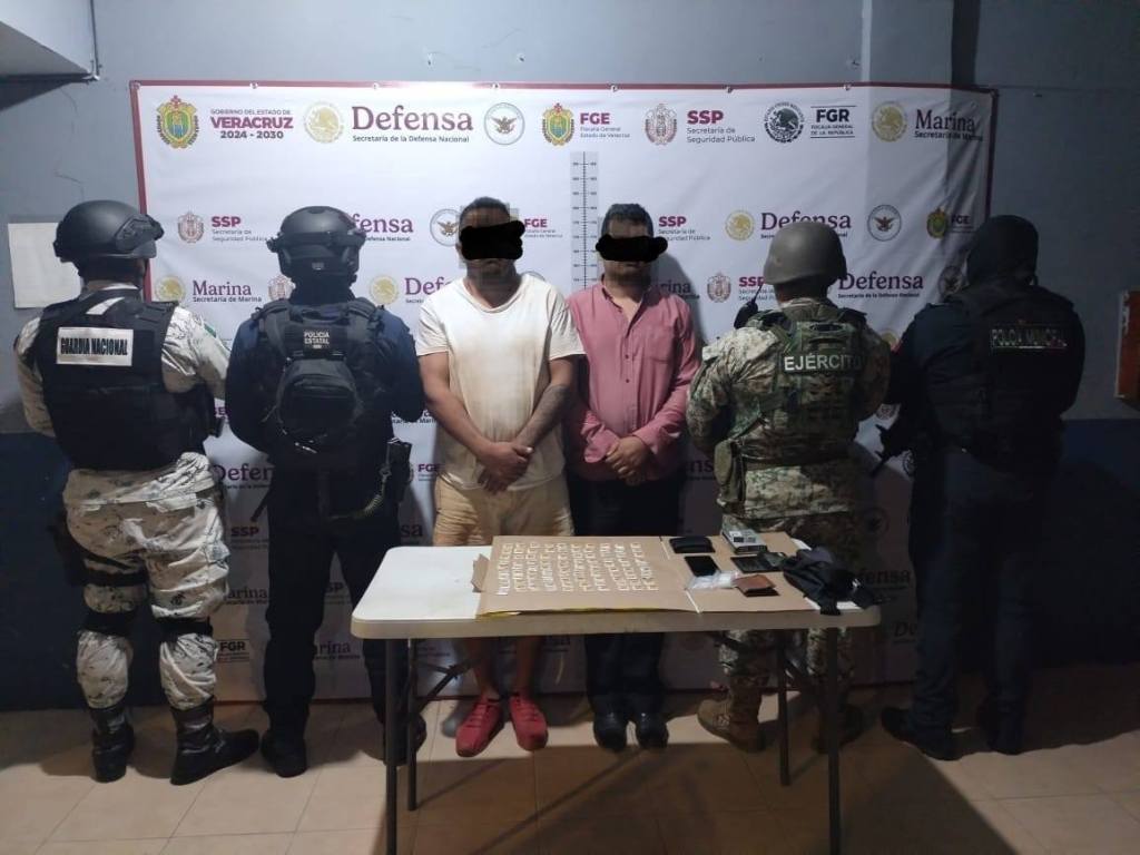 Los detenidos fueron identificados como César “N”, de 33 años, de oficio taxista originario de Cosoleacaque, y Roberto “N”, de 43 años, de oficio herrero procedente de la Ciudad de México. Ambos fueron puestos a disposición de la Fiscalía General del Estado (FGE) como presuntos responsables de delitos contra la salud y trasladados a los separos de la Policía Municipal en espera de ser presentados ante un juez de control.
