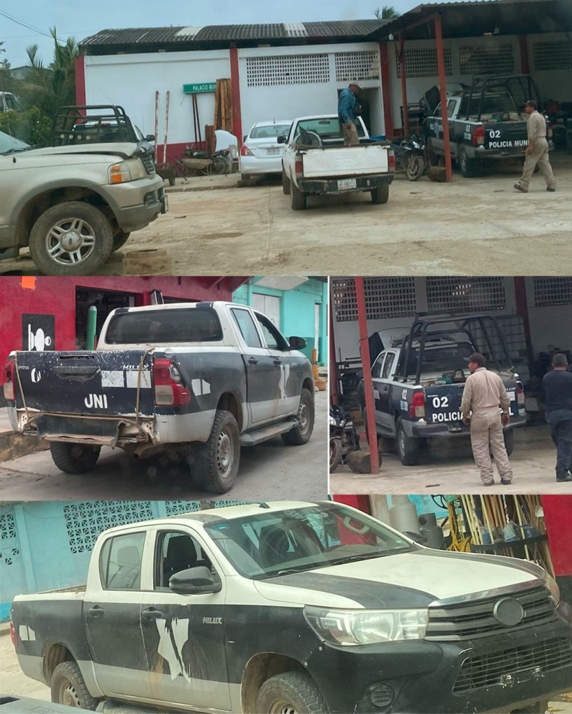 Eso no es todo, el parque vehicular de Jesús Carranza está para llorar, con patrullas que se caen a pedazos, viejas, todas destrozadas que incluso el alcalde y la síndica las traen para hacer mandados en sus ranchos antes de ponerlas a trabajar en lo que realmente amerita.