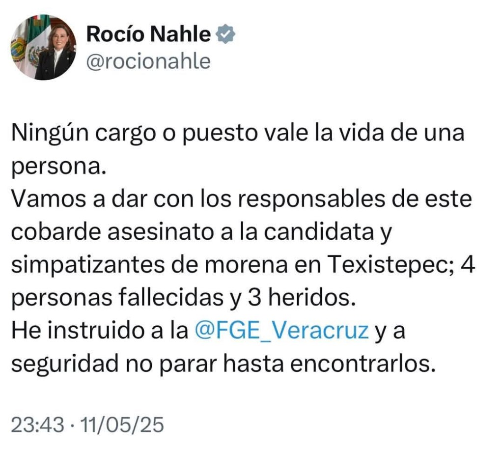 Texistepec, Ver.- La noche de este domingo, la campaña política en el sur de Veracruz se tiñó de luto tras el brutal asesinato de Yesenia Lara Gutiérrez, candidata de Morena a la alcaldía de Texistepec. El trágico suceso ocurrió luego de que la aspirante encabezara una caravana proselitista en el municipio.