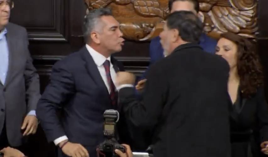 Mientras se entonaba el Himno Nacional, Moreno se acercó para reclamar al presidente que no le había dejado participar. Cuando acabó la ceremonia, encaró a Noroña con gritos y exigencias: “¡Te estoy pidiendo la palabra!”, le reclamó. El priista lo tomó del hombro y lo jaloneó, a lo que el morenista solo pudo responder: “¡No me toques!”. La confrontación escaló rápidamente y Moreno continuaba empujando al presidente del Senado, quien daba pasos hacia atrás para esquivar las agresiones.