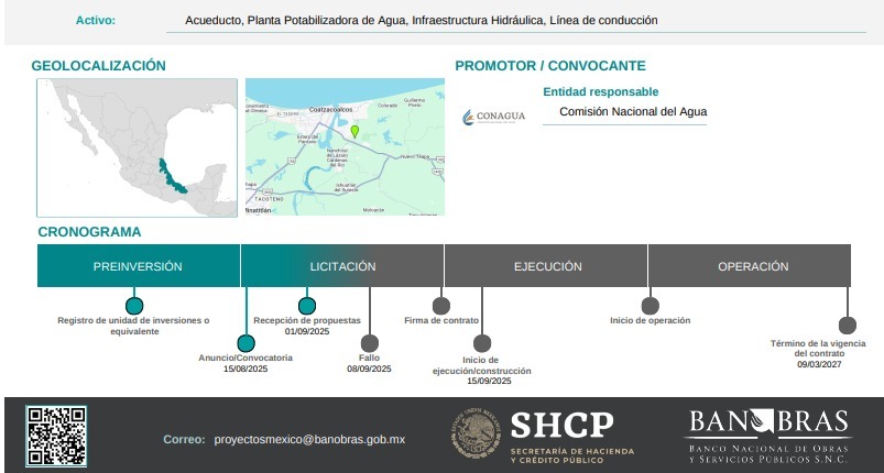 Con una inversión inicial en este ejercicio fiscal 2025 de 332 millones 500 mil pesos y una inversión total estimada de casi 2 mil 900 millones de pesos, el proyecto contempla la construcción de un nuevo acueducto desde la Presa Cangrejera.
