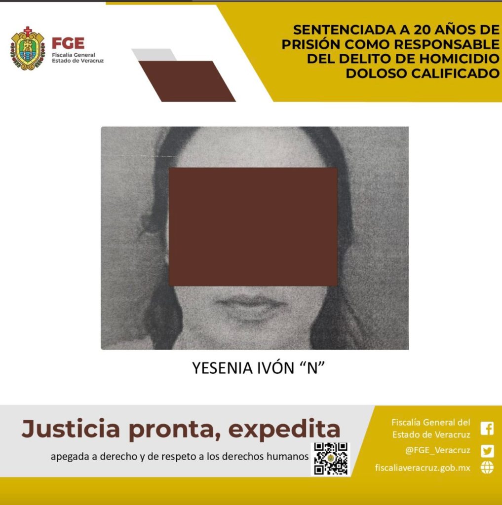 La Fiscalía General del Estado (FGE) de Veracruz informó que Yesenia Ivonne Castillo fue condenada a 20 años de cárcel por su participación en el multihomicidio de siete miembros de su propia familia, ocurrido en julio de 2022 en Boca del Río. Aunque la FGE solicitaba una pena de 490 años, la sentencia final fue de dos décadas de prisión.