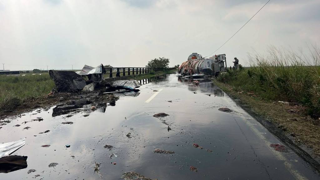 Sin embargo, por la seguridad de los conductores, las autoridades de Tránsito hicieron un llamado urgente a EXTREMAR PRECAUCIONES y disminuir la velocidad considerablemente antes de llegar a la zona del Puente El Cocodrilo, donde se registró el percance para evitar un accidente más por residuos del aceite derramado sobre la vialidad.
