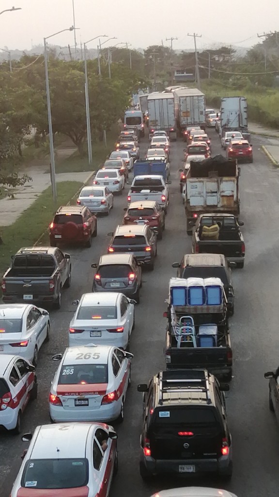 - Salida del Puerto: La fila de vehículos se extendió por más de dos kilómetros sobre la Avenida Universidad y hacia la carretera Coatzacoalcos-Minatitlán por Canticas.