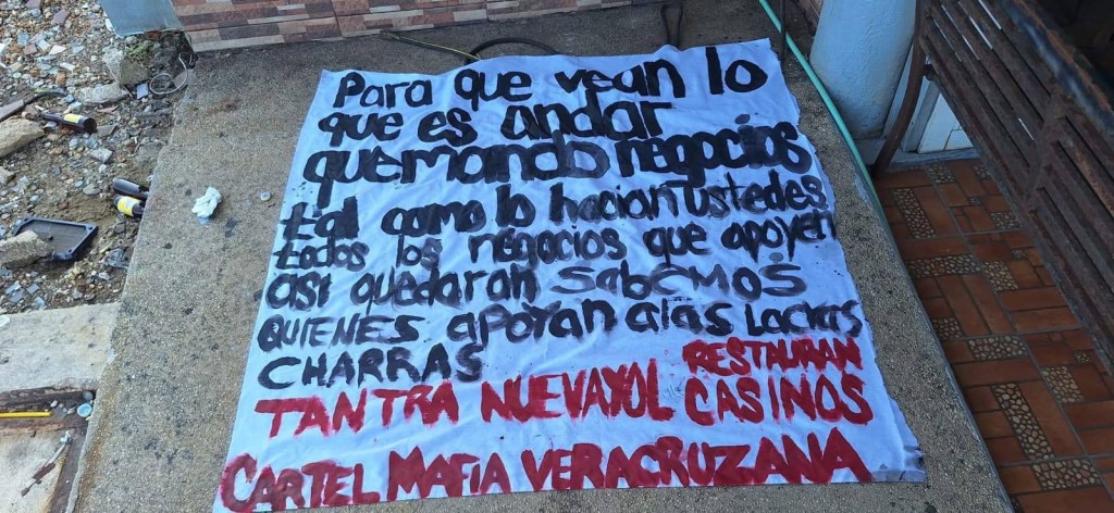 Los presuntos delincuentes dejaron una narcomanta en el piso del establecimiento, en la que el grupo Mafia Veracruzana lanza advertencias que ya son analizadas por las autoridades.